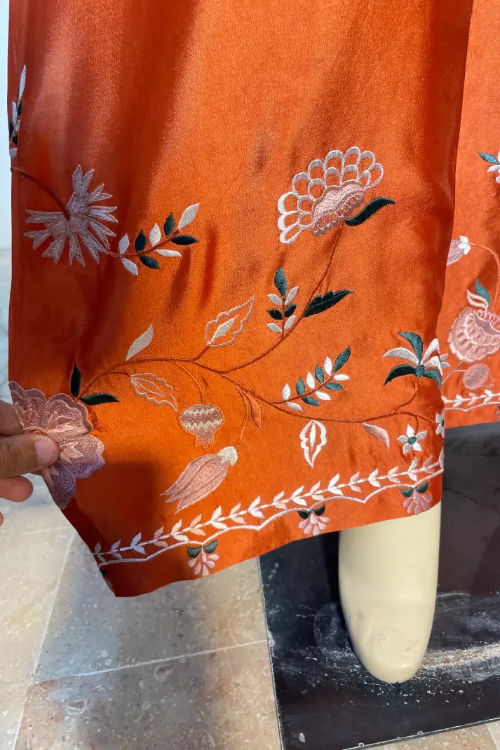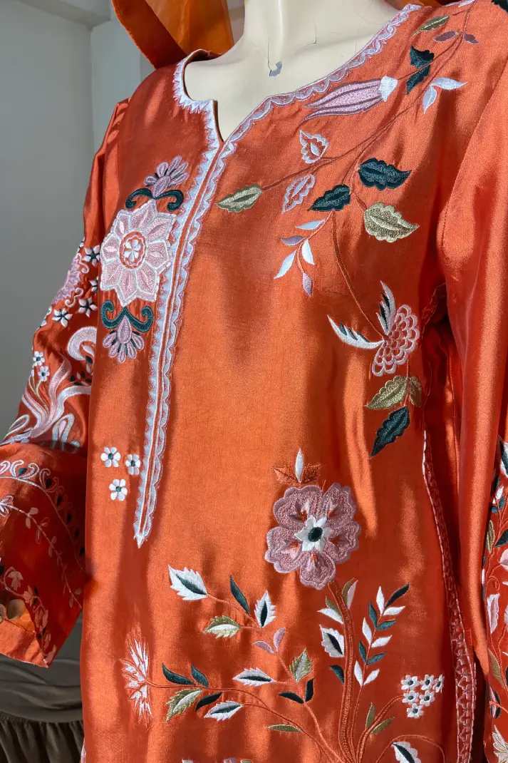 SKU: AZ-43 Color: Neon Orange Fabric: Shirt and Shalwar: Pure Shisha Silk, Dupatta: Organza/Medium Silk/Chiffon Work Details: Embroidered