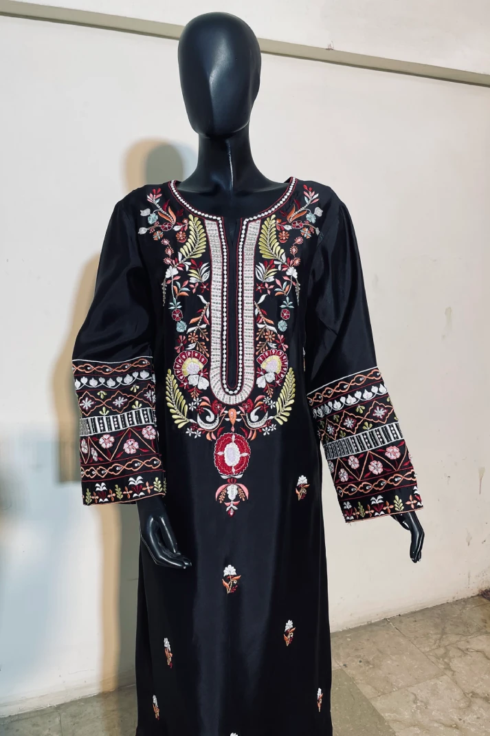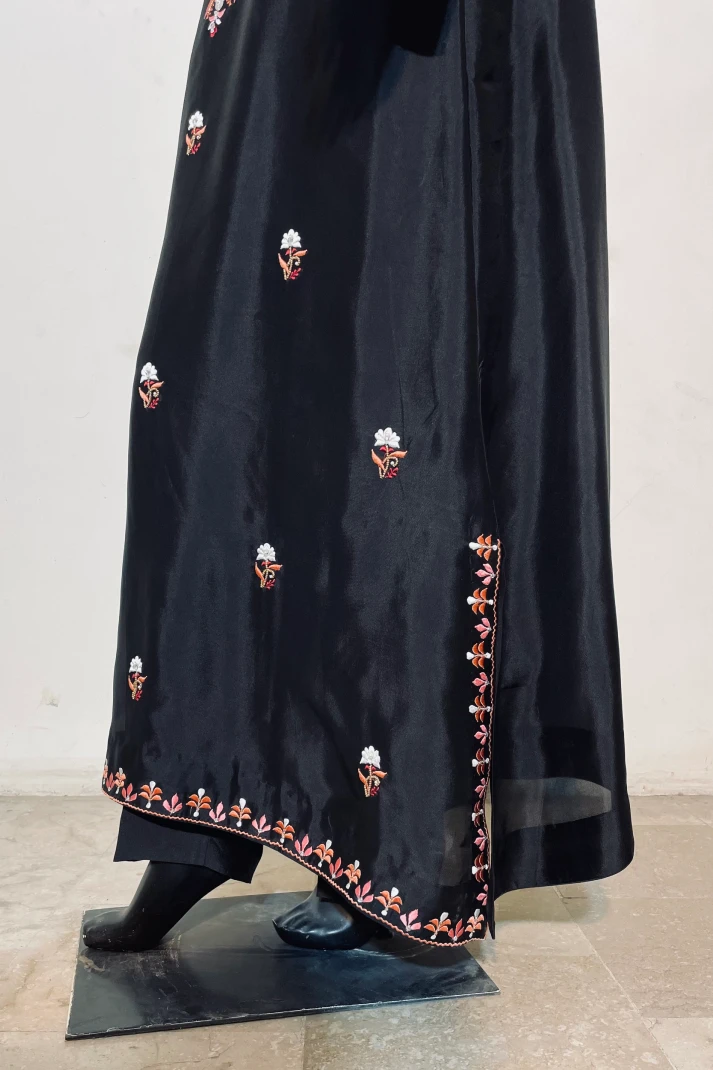 SKU: AZ-63 Color: Black Fabric: Shirt and Pant: Pure Shisha Silk, Dupatta: Organza Work Details: Embroidered
