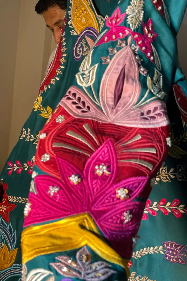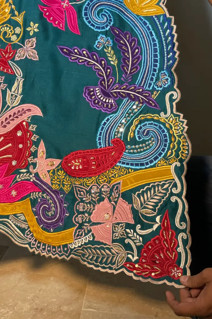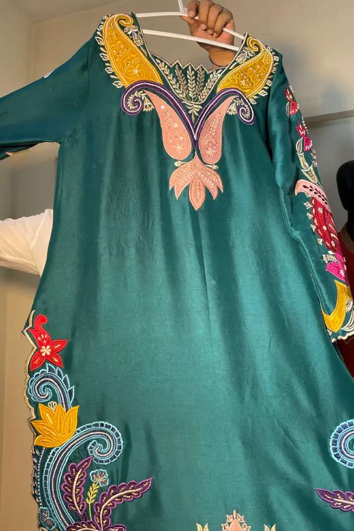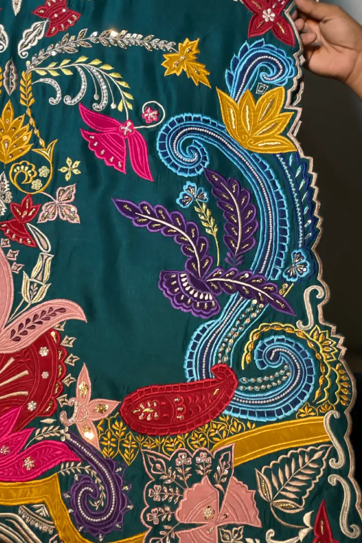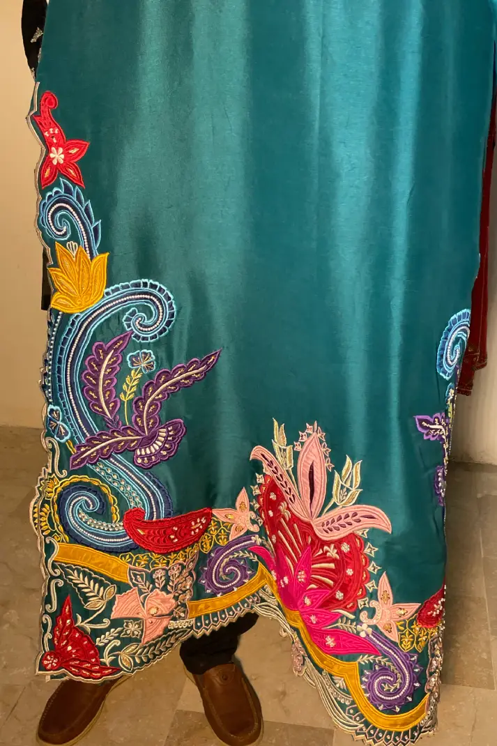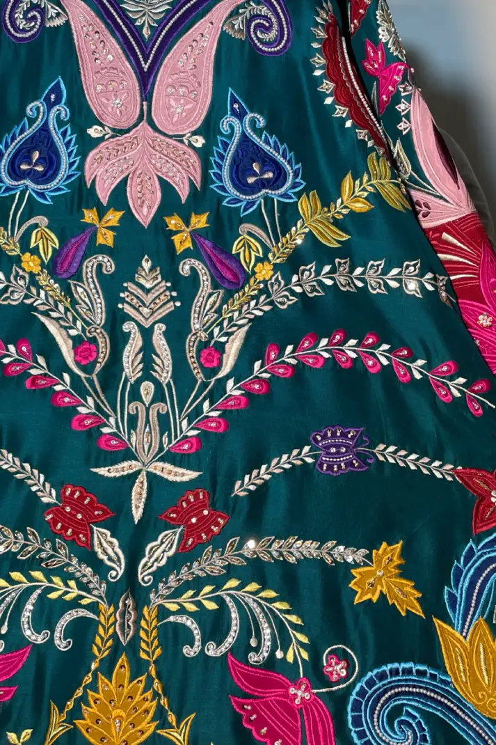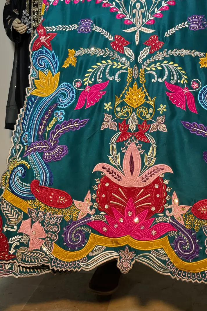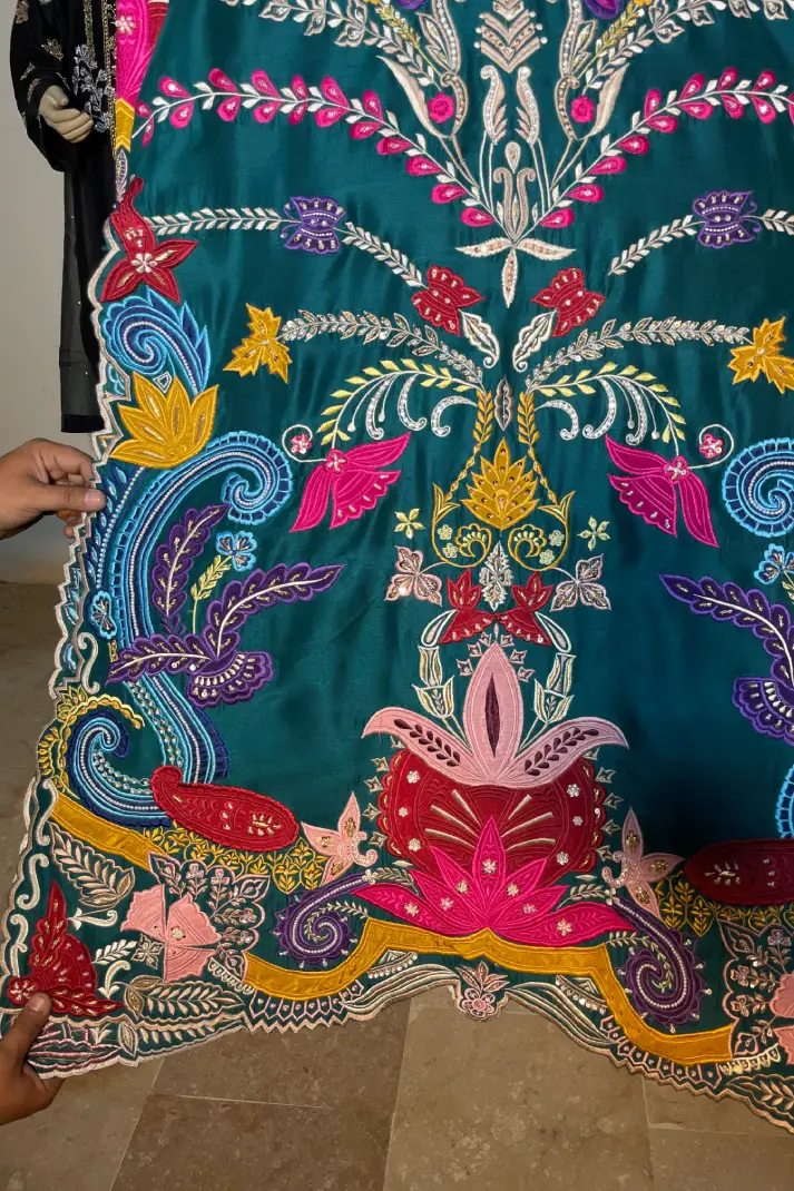 SKU: AZ-31 Color: Peacock Green Fabric: Shirt and Shalwar: Pure Shisha Silk, Dupatta: Organza/Medium Silk/Chiffon Work Details: Embroidered